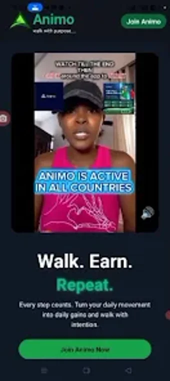 Animo-Walk และ Earn เป็นแอปพลิเคชันที่ออกแบบมาสำหรับ Android ซึ่งเปลี่ยนกิจกรรมทางกายให้เป็นรางวัลทางการเงิน ผู้ใช้สามารถหารายได้จากการเดิน โดยมีโอกาสในการหารายได้หลากหลาย เช่น โบนัสต้อนรับสำหรับผู้ใช้ใหม่ ค่าคอมมิชชั่นสำหรับการแนะนำเพื่อน และรางวัลสำหรับการมีส่วนร่วมทางสังคม แอปมีสองระดับรางวัล ได้แก่ Animo Silver และ Animo Gold ซึ่งช่วยให้ผู้ใช้เลือกแพ็กเกจที่ตรงกับเป้าหมายการหารายได้ของตน นอกจากนี้ ความเป็นส่วนตัวเป็นสิ่งสำคัญ เนื่องจากแอปไม่เก็บข้อมูลส่วนบุคคลหรือมีการติดตาม